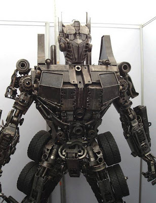 Giant 7-foot Transformers Optimus Prime metal sculpture created by Robot Models.